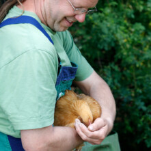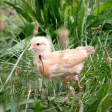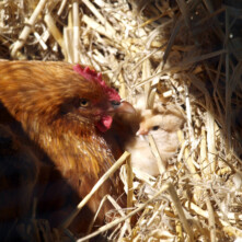 Auf der Baustelle mussten sie gegen Mittag den Transporter noch einmal umparken und kurz darauf holte Duncan Jonas, um ihm etwas zu zeigen: unter dem Transporter pickte unser gelber Italienerhahn, Caruso, nach Fressbarem!!! Hört sich an wie Gärtner- oder Hühnerlatein- ist aber wahr! Caruso muss ca. 20 Std. auf dem Reserverad unter der Ladefläche gehockt haben, bei -6°Grad in der Nacht und bei 90 km/h auf der Autobahn um dann völlig unbeeindruckt auf den Boden zu hüpfen.